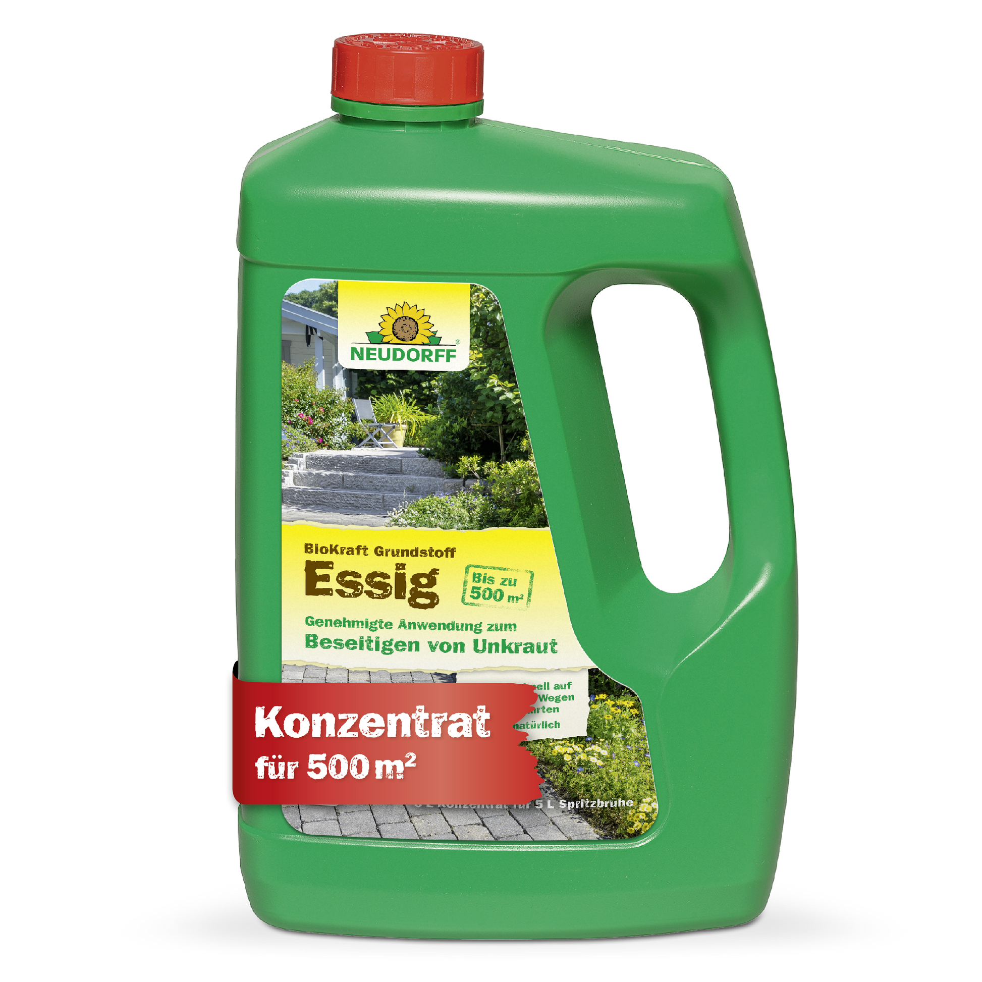 Neudorffs BioKraft Grundstoff Essig ist genehmigt zur Anwendung gegen Unkräuter auf Wegen, Bordsteinen, Gehwegen und Terrassen. Zusätzliche genehmigt ist es zur Desinfektion an Garten-Schneidewerkzeugen. Unkräuter sind ein großes Thema, gerade auf befestigten Flächen gab es bislang wenig gute Lösungen. Es ist zu 100 % natürlich und besteht aus nachwachsenden Rohstoffen in Lebensmittelqualität.