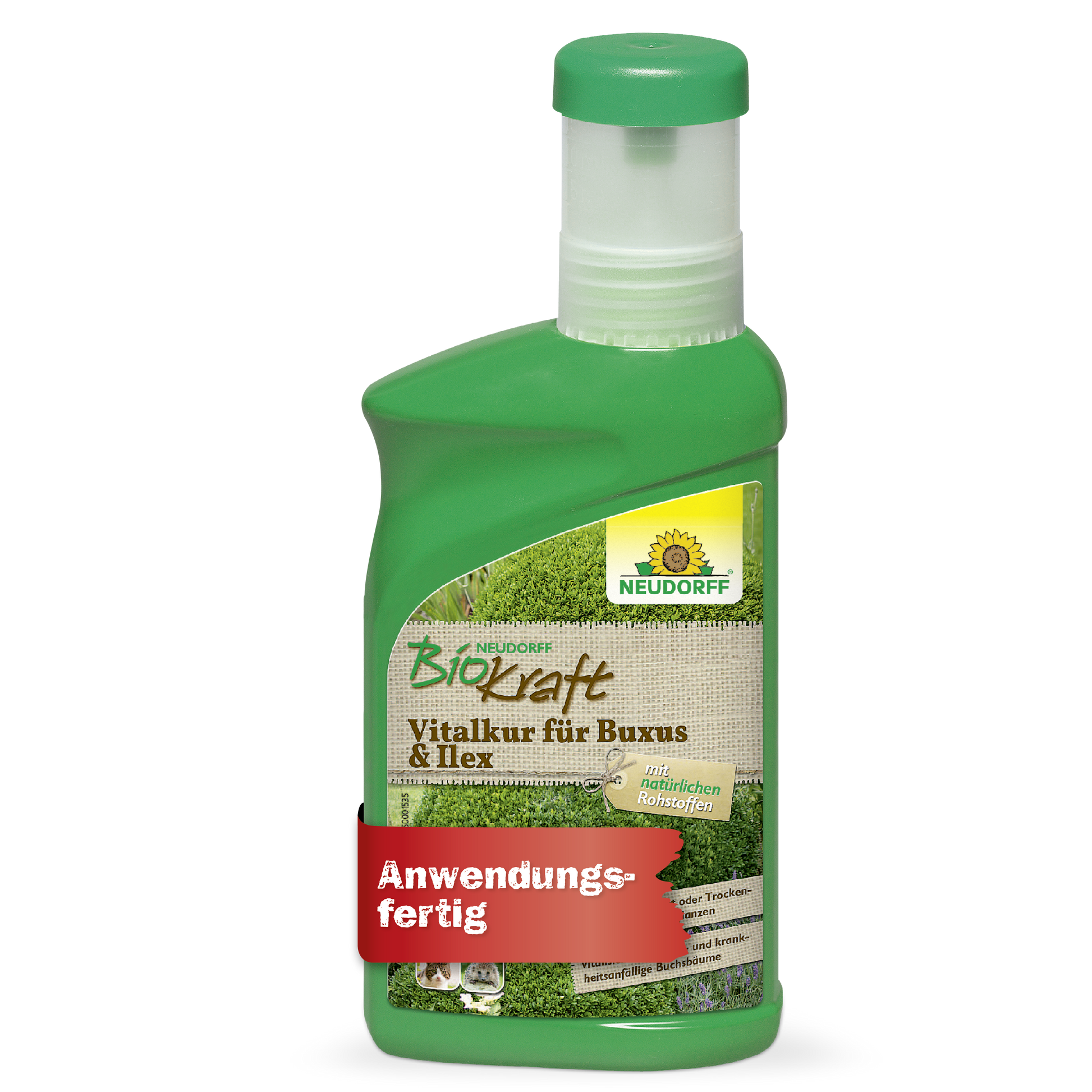 Neudorff BioKraft Vitalkur für Buxus & Ilex möglichst frühzeitig anwenden, um die Gesundheit und Vitalität der Pflanze zu fördern.
