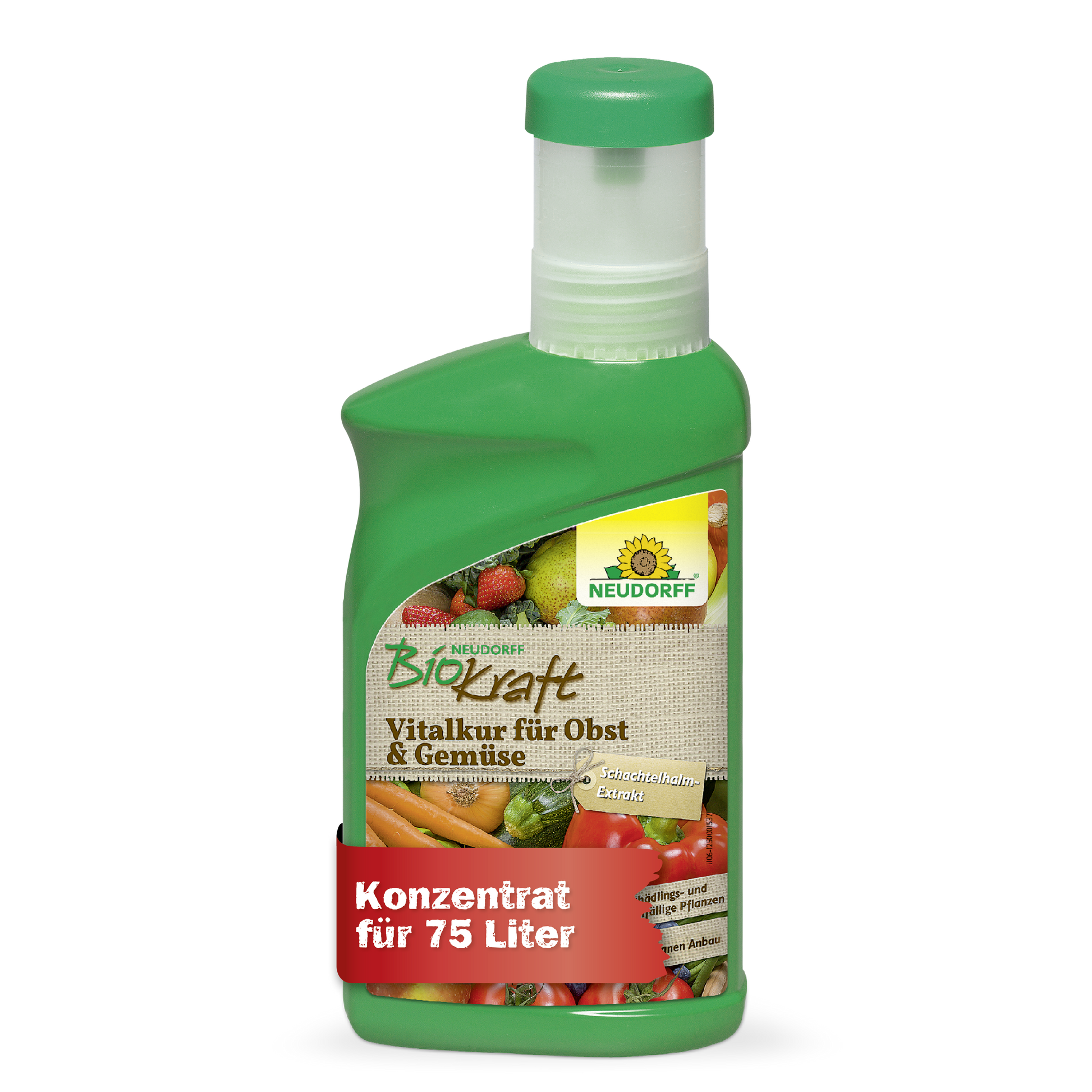 Neudorff BioKraft Vitalkur für Obst & Gemüse möglichst frühzeitig anwenden, um die Gesundheit und Vitalität der Pflanze zu fördern.