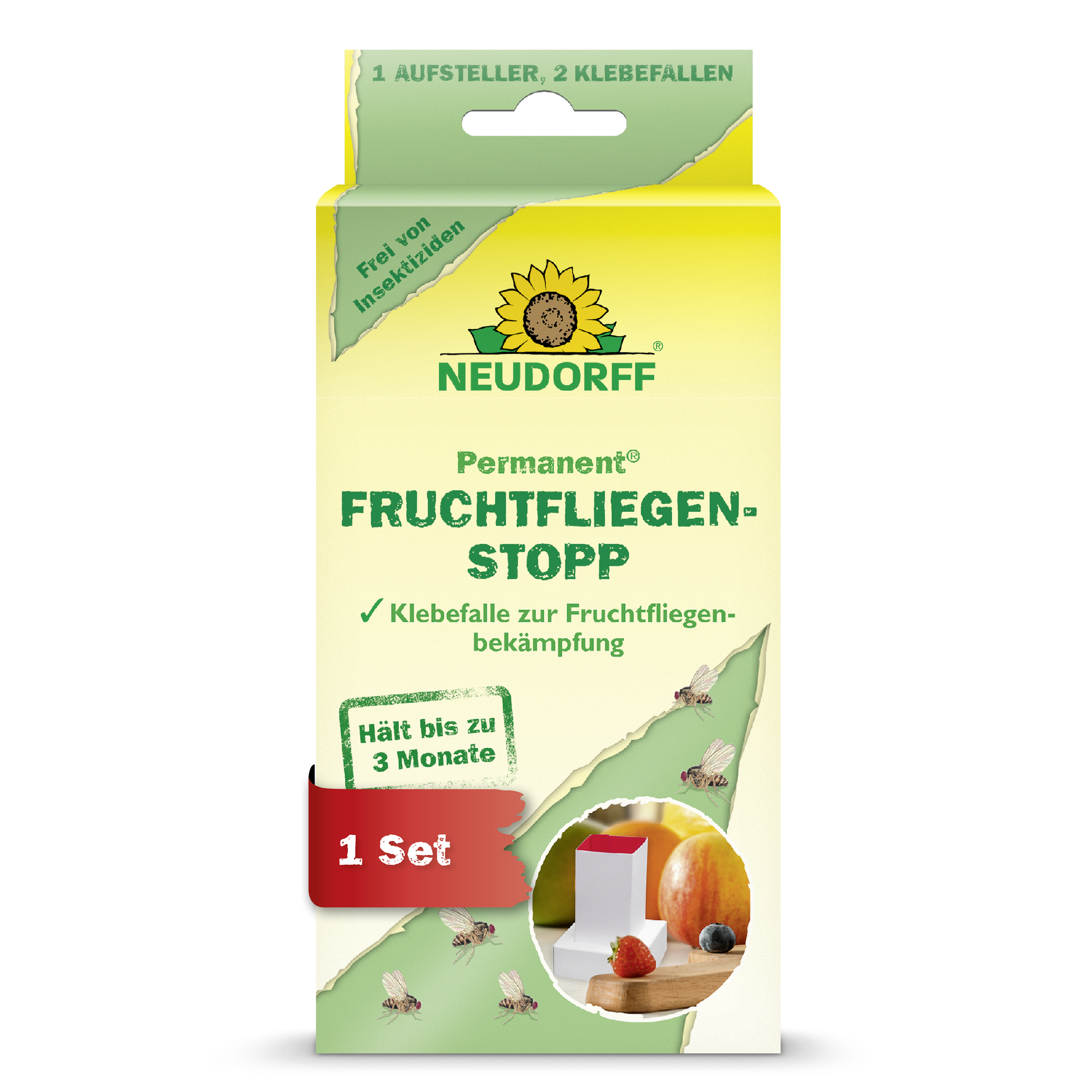 Permanent FruchtfliegenStopp, eine hochwirksame Lösung gegen Frucht-, Obst- und Essigfliegen. Diese Klebefalle fängt die Fliegen zuverlässig und hält sie sicher durch einen speziellen Kleber fest, was Ihnen hilft, einen Befall schnell und effektiv festzustellen und zu kontrollieren.