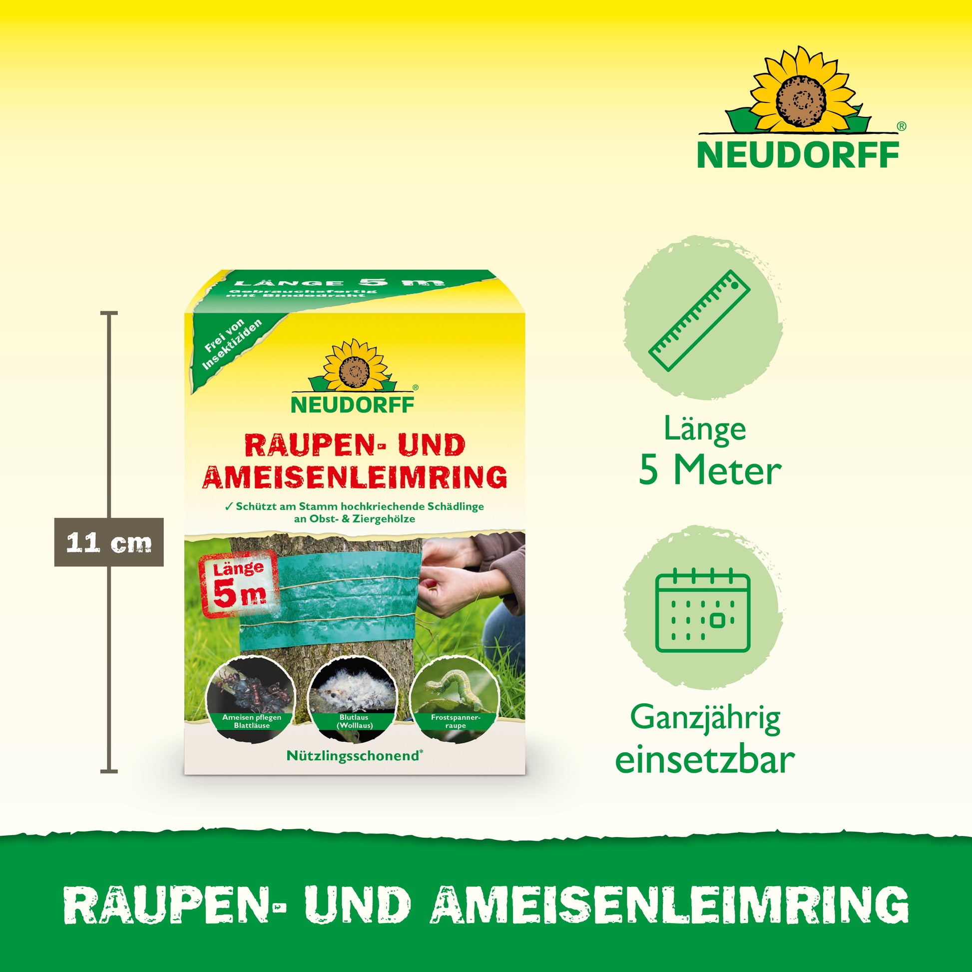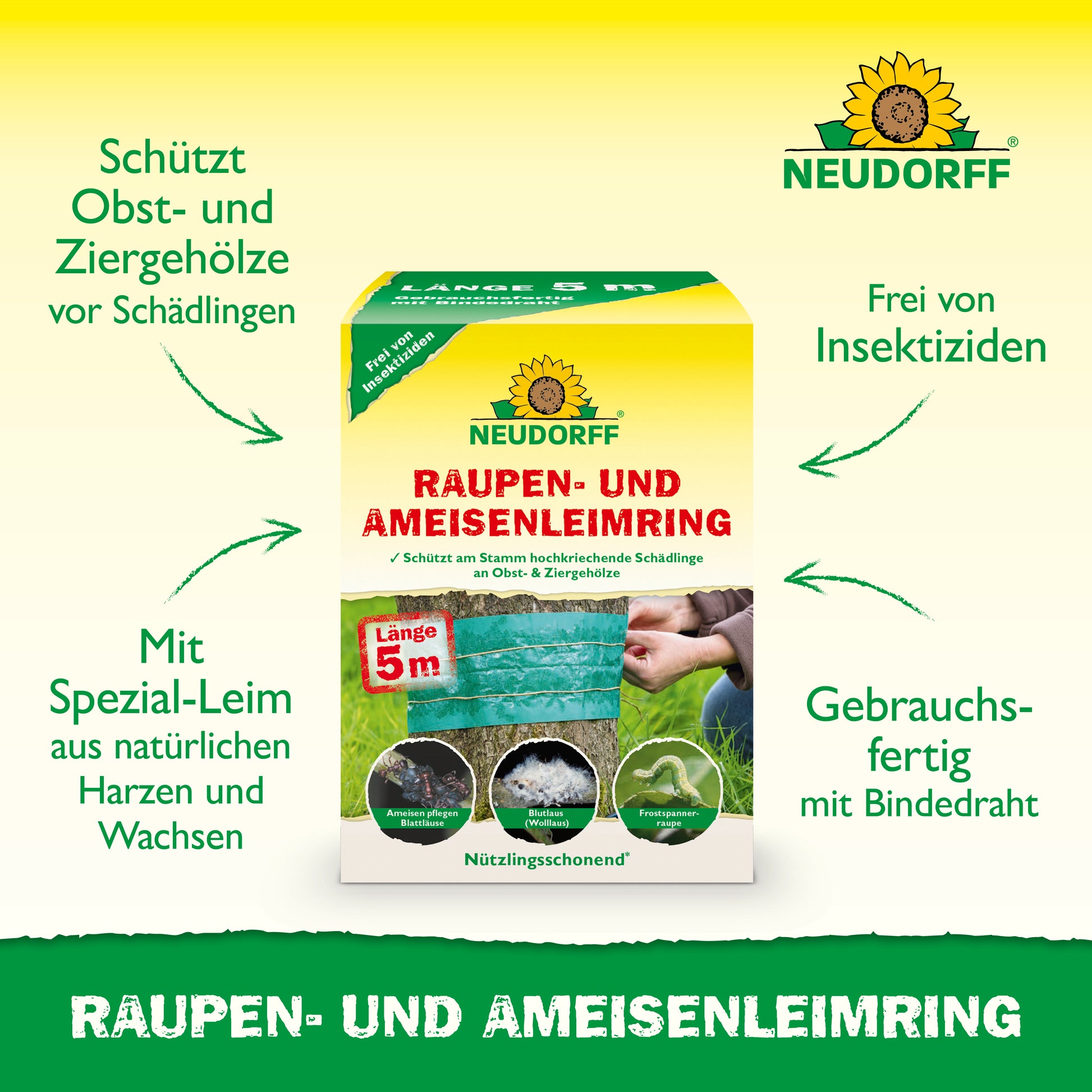 Der Raupen- und AmeisenLeimring mit Spezial-Leim aus natürlichen Harzen und Wachsen schützt Ihre Obst- und Ziergehölze gegen Schädlinge, die am Stamm hochkriechen. Der Spezial-Leim wird nicht abgewaschen und tropft selbst bei hohen Temperaturen nicht ab.